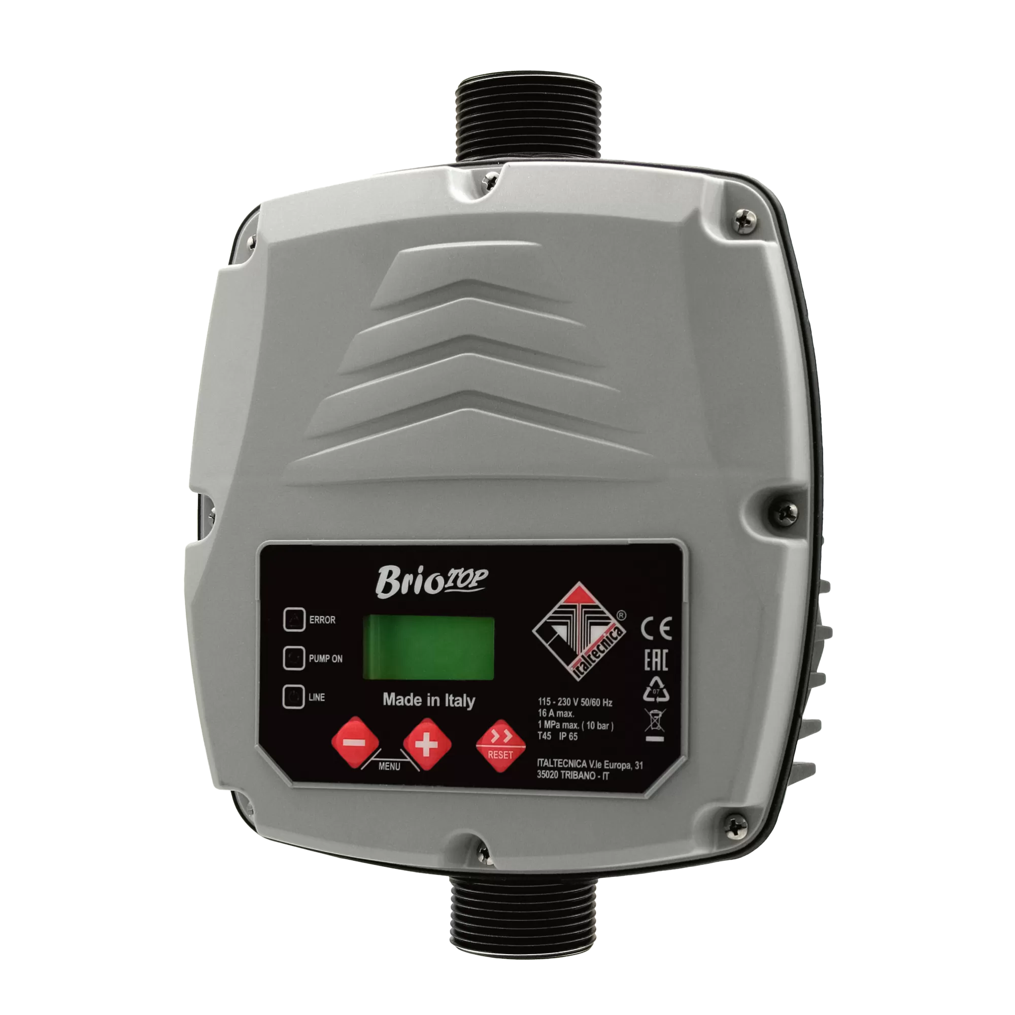 Brio Top – это электронное устройство управления для однофазных электронасосов, позволяющее автоматически включать и останавливать насос, защищая его в том случае, если возникают неподходящие условия для работы (отсутствие воды, перегрузка двигателя, опасность льда). Brio Top может работать в различных установках: