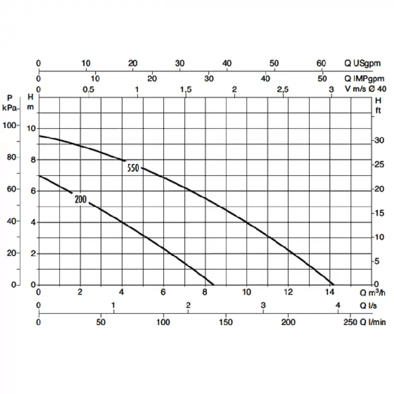 Графические характеристики дренажного насоса DAB NOVAPOND 550 M
