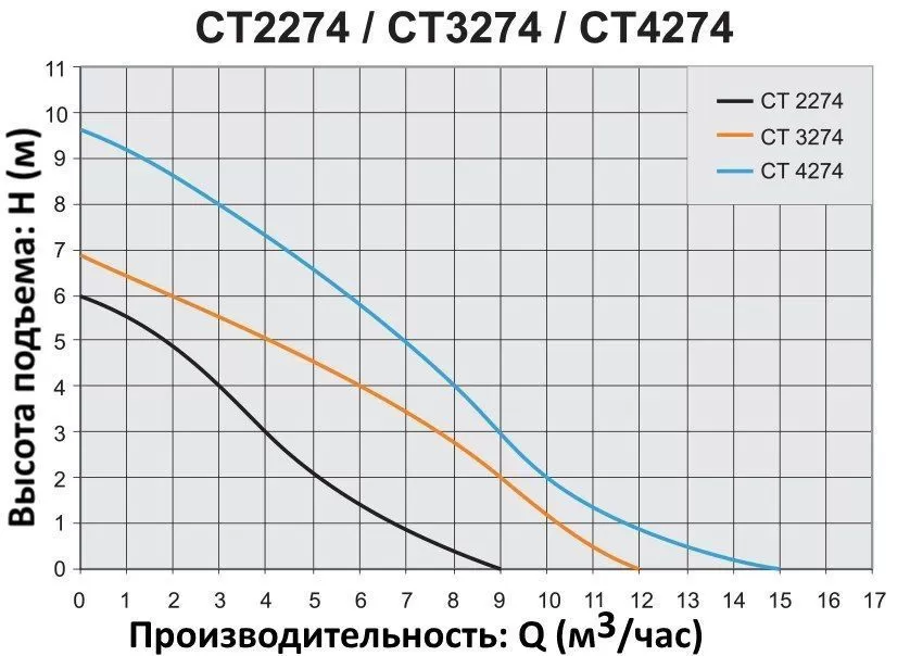 Графические характеристики дренажного насоса ELPUMPS CT 2274