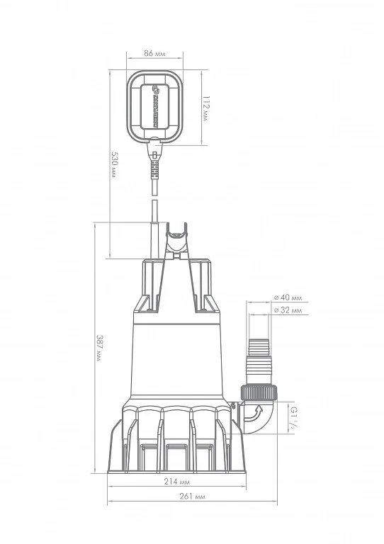 - Насос оснащен поплавковым выключателем, который автоматизирует работу насоса. Его необходимо отрегулировать на определенный уровень воды для включения и выключения насоса, изменяя длину кабеля поплавка в выемке на рукоятке.