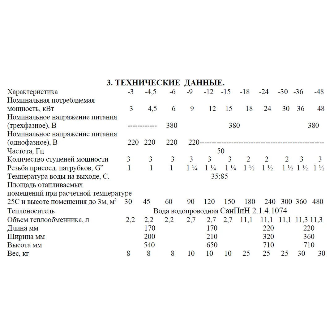 | Тип котла | Электрический, одноконтурный |