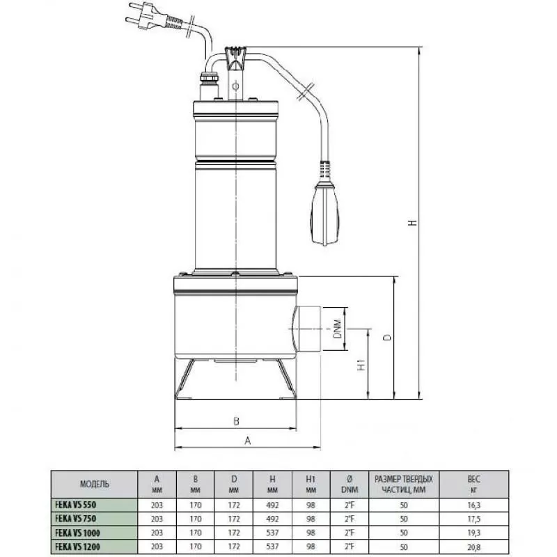 Схема фекального насоса DAB FEKA VS 1200 T-NA