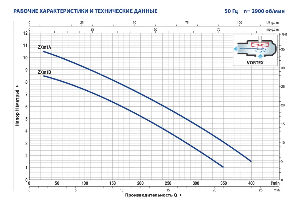Графические характеристики фекального насоса PEDROLLO ZXM 1B/40