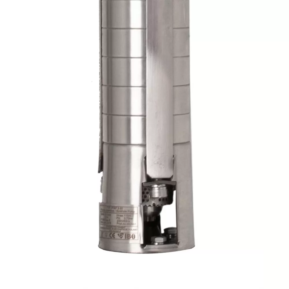 Погружной насос для скважины IBO 3ISP 2/30 диаметром 76 мм выполнен полностью из нержавеющей стали, предназначенные для установки в скважинах диаметром не менее 90 мм. Максимальное содержание песка в воде – до 0,3%. Насос IBO 3ISP 2/30 является одним из самых прочных в отношении конструкции насосом для глубоких скважин благодаря используемым материалам. Заборная часть и напорный патрубок, корпус, вал и роторы 100% изготовлены из нержавеющей стали. Насос поставляются в комплекте с 3–дюймовыми масляными двигателями. Скважинный насос обладает сбалансированными напорно-расходными характеристиками. Максимальный напор насоса составляет 115 м, максимальная производительность равна 3 м³/час, при этом мощность электродвигателя 750 Вт. Насосы ИБО серии 3ISP являются первыми насосами на Белорусском рынке, полностью изготовленными из нержавеющей стали диаметром 76мм. Насос комплектуется кабелем 1 м, предназначенный для погружением в воду. По желанию заказчика возможно удлинение кабеля на любую длину.