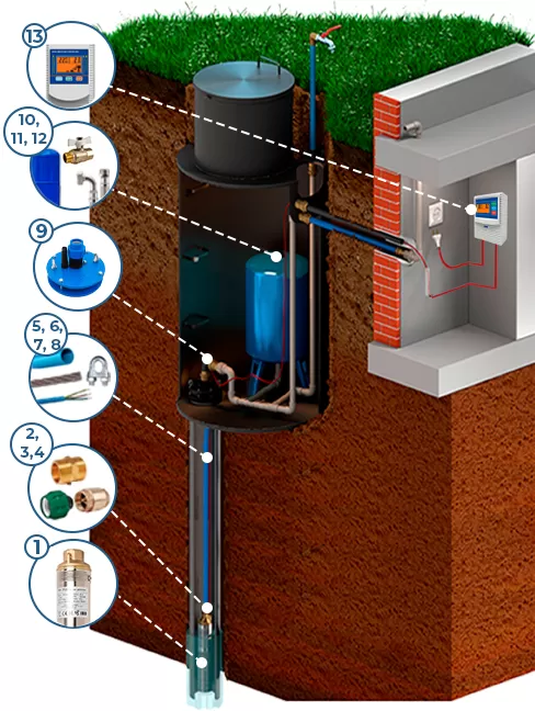 Обеспечение крупных ферм водой из глубоких водозаборов, орошение садов и огородов, питомников деревьев и кустарников, осушение территорий, сантехника, промышленность.Установка скважинного насоса IBO 4SD 12/16