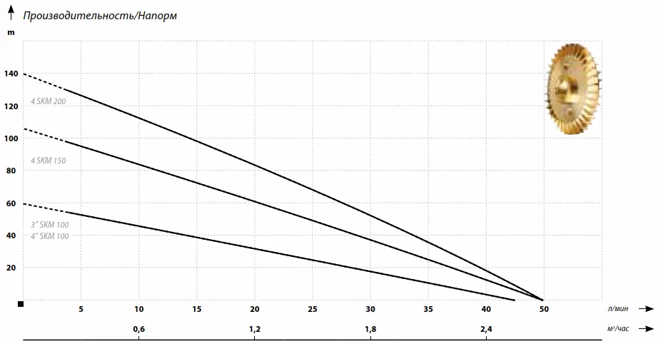 Погружной вихревой скважинный насос IBO 4SKM 150 INOX отличается хорошей конструкцией. Гидравлическая часть насоса встроена непосредственно в вал двигателя. Насос изготовлен из хороших конструкционных материалов, корпус двигателя насоса изготовлен из нержавеющей стали, такие же втулки рабочего колеса и приводной вал, рабочее колесо и корпус напорной части производятся из латуни. Диаметр насоса 98 мм ( 4" ), но он легко помещается в скважину диаметром 125мм. В насосе используется маслозаполненный двигатель. Масло обеспечивает полную смазку подшипников двигателя, что гарантирует долгие годы эксплуатации без обслуживания. Насос может запускаться до 20 раз в час, что является хорошим результатом по сравнению с другими более дешевыми скважинными насосами. Насос оснащен однофазным двигателем мощностью 1100 Вт. Максимальный напор насоса составляет 90 м, производительность насоса в максимальной точке достигает 3 м³/час. IBO 4SKM 150 INOX комплектуется с завода кабелем 15 м.