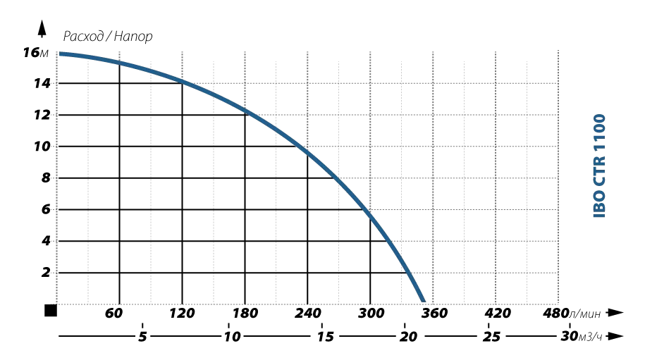 Графические характеристики фекального насоса IBO CTR 1100