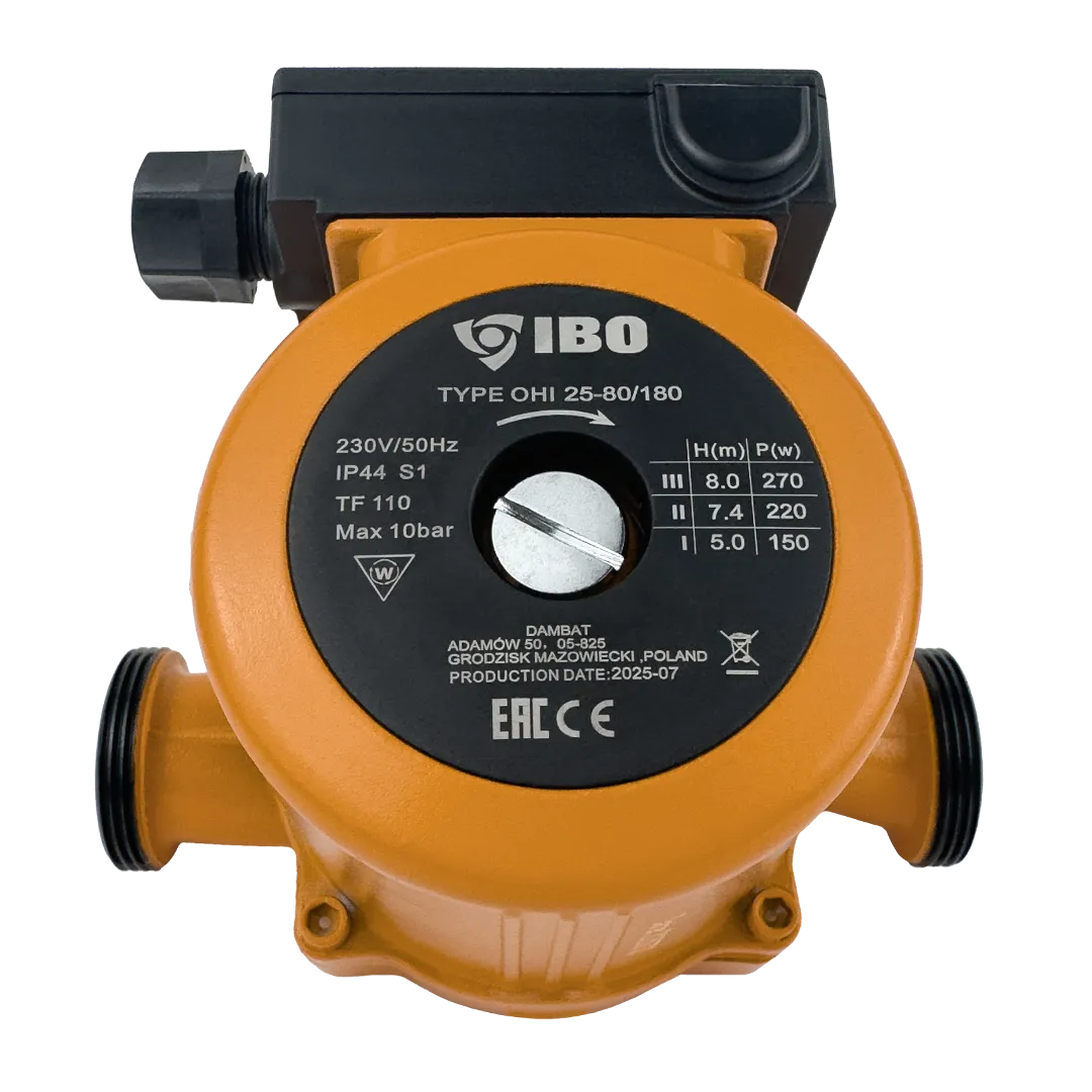 Циркуляционный насос IBO OHI 25-80/180 доказывает свою надежность в системах отопления благодаря своей стандартной монтажной длине и простоте установки в уже существующие системы. Этот насос предоставляет уникальную возможность настройки силы подачи воды, обладая тремя различными скоростями, что позволяет точно соотнести его работу с требованиями конкретной системы.