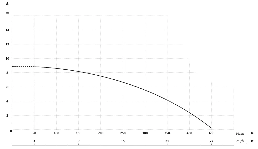 Максимальное количество воды на выходе из насоса.