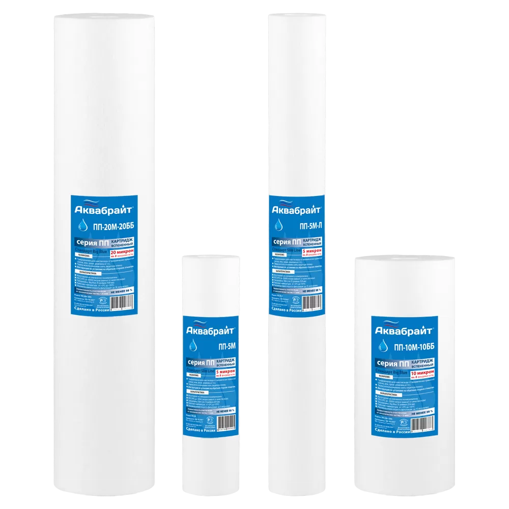 Картридж для фильтра АКВАБРАЙТ ПП-10М изготовлен из спеченного полипропилена с пищевым допуском. Предназначен для механической очистки воды от песка, грязи и ржавчины.