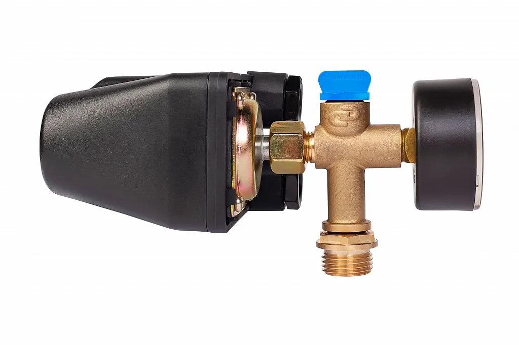 Комплект автоматики на баке «КАБ» используется для работы в системах водоснабжения совместно с гидроаккумулятором. Установленное на штуцере реле давления представляет собой двух-контактное реле коммутации электрических цепей, срабатывающее по величине давления воды. После прекращения разбора воды давление в системе растет до верхнего предела настройки реле давления, после чего реле давления выключает электронасос. При открытии крана вода поступает в систему под давлением из гидроаккумулятора. По мере расхода воды давление в системе падает до нижнего предела настройки реле давления, после чего реле давления включает электронасос.