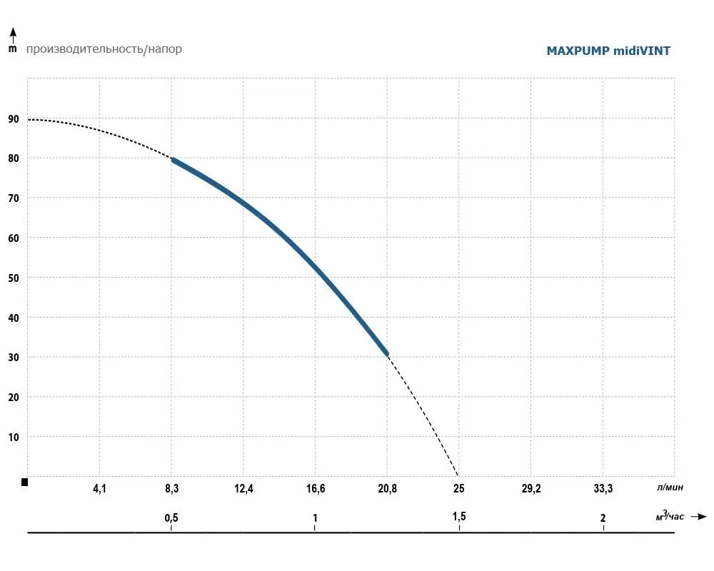 MAXPUMP midiVINT предназначен для подачи чистой воды с небольшой глубины в дом или для полива сада. Их устанавливают непосредственно в пробуренные скважины. Применяются для работы в системах автоматического водоснабжения дач, индивидуальных домов, коттеджей и прочих строений, которые невозможно подключить к центральной системе водоснабжения.