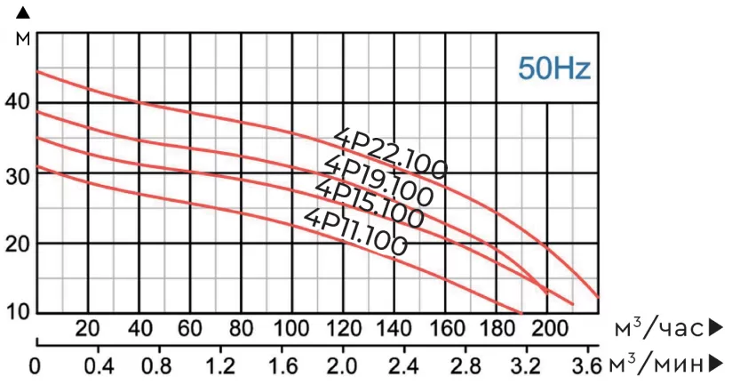 - Пропуск частиц: до 50 мм, что позволяет насосу работать с загрязнённой водой, содержащей крупные твёрдые включения.