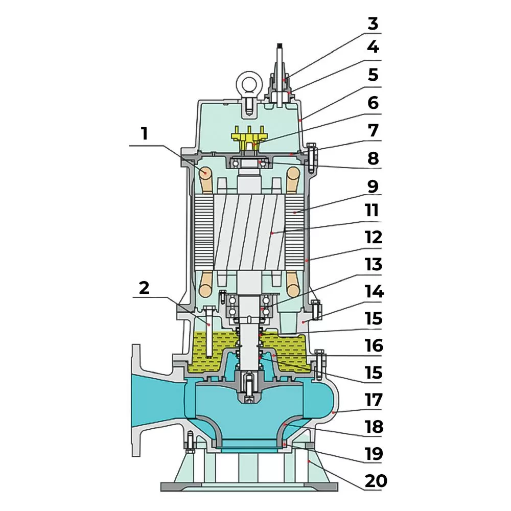 - Погружная конструкция: обеспечивает низкий уровень шума и безопасную эксплуатацию.