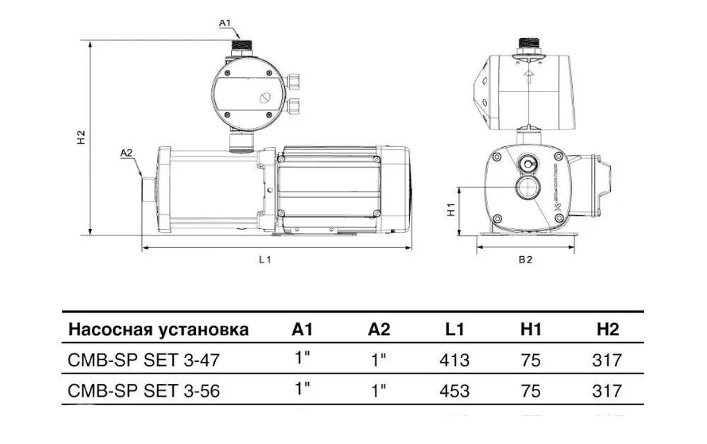 Габариты поверхностного насоса CMB-SP SET 3-56 (PM 1-22)