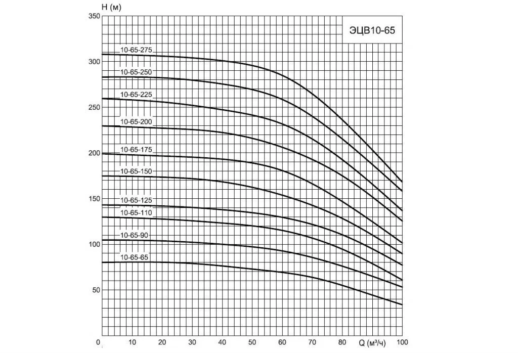 Графические характеристики ЭЦВ 10-65-150н