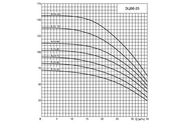 Графические характеристики ЭЦВ 6-25-70н