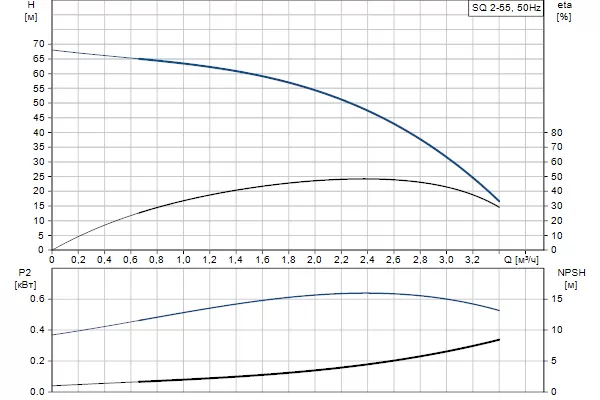 Графические характеристики Grundfos SQ 2-55 кабель 60 метров